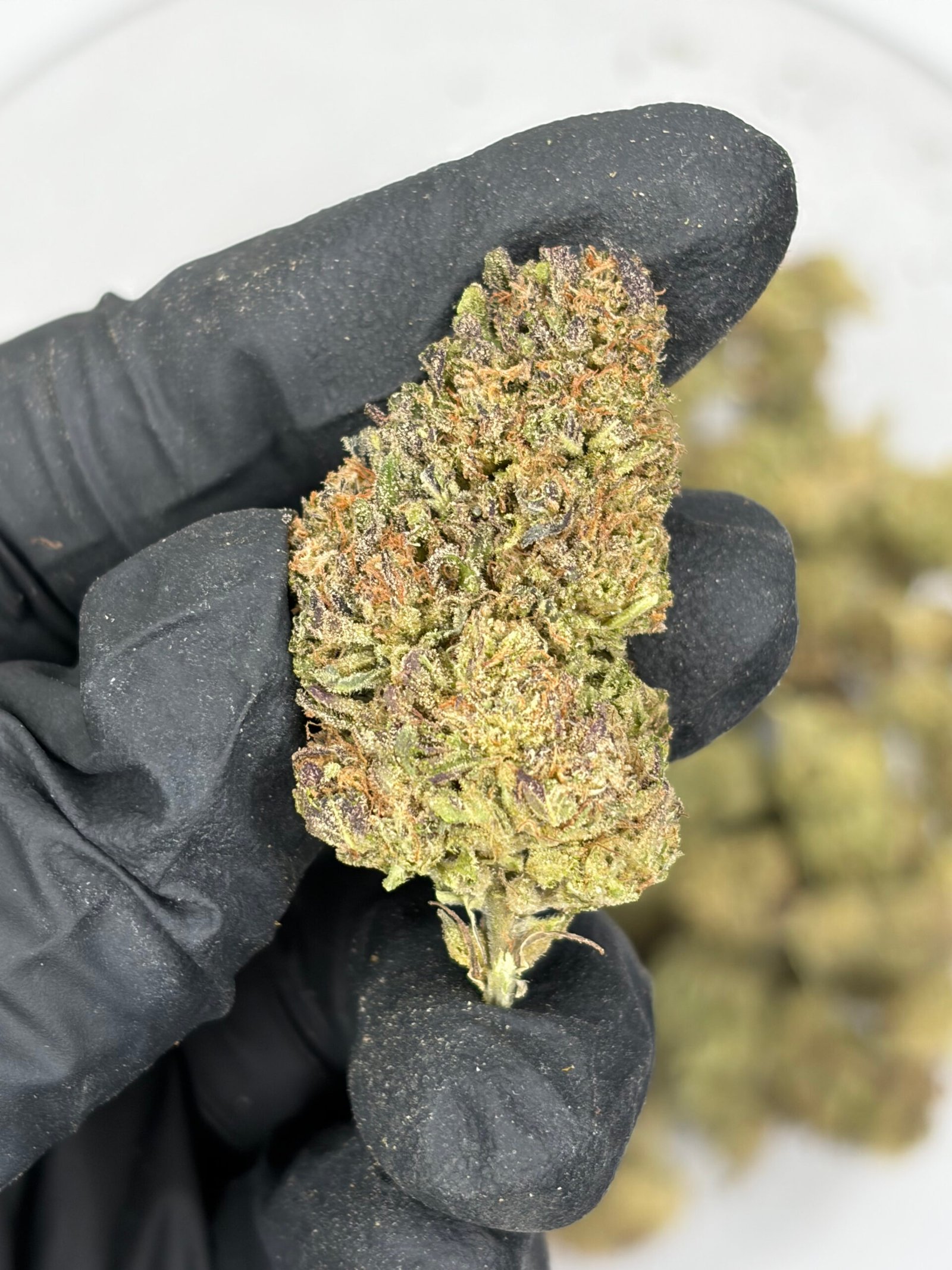 THC: 24–28%+ (up to 30%+ in select batches) CBD: <1% Type: Indica-dominant hybrid (approx. 70/30) Lineage: Slurty 3 × Gush Mints (modern cut)